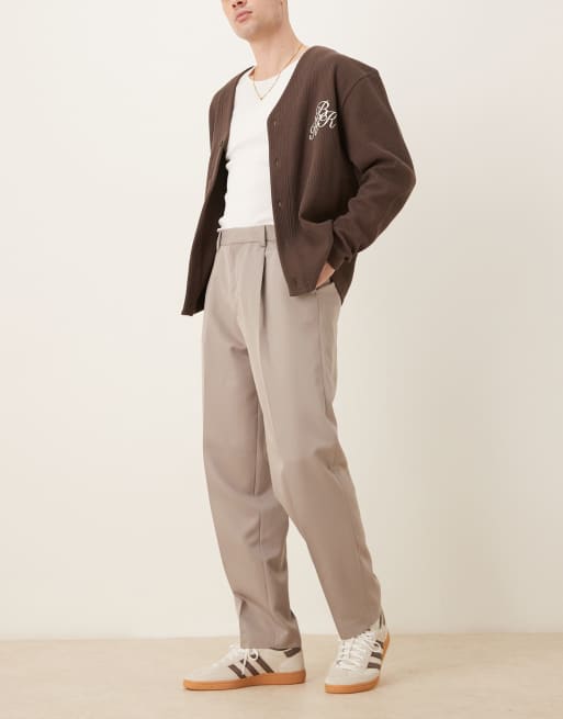 ASOS DESIGN – Elegante, schmal zulaufende Oversize-Hose in dunklem Steinbeige mit Bundfalten