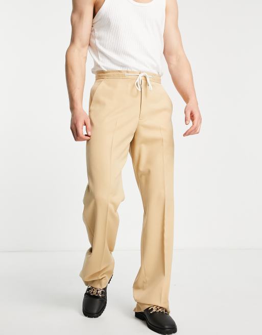 ASOS DESIGN – Elegante, weite Hose in Kamelbraun mit Kordelzug im Bund