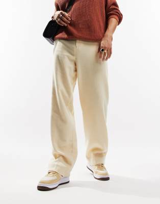 ASOS DESIGN – Elegante, weite Wollmix-Hose in Steinbeige mit Pepitamuster