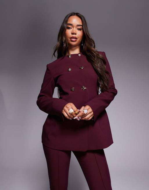 ASOS DESIGN – Eleganter, hochgeschlossener Anzug-Blazer in Pflaumenrot mit verschiedenen Knöpfen