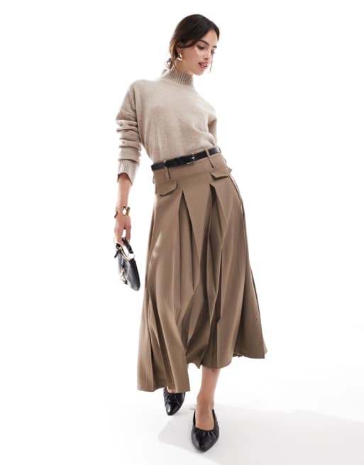 ASOS DESIGN – Eleganter Midaxirock in Mokka