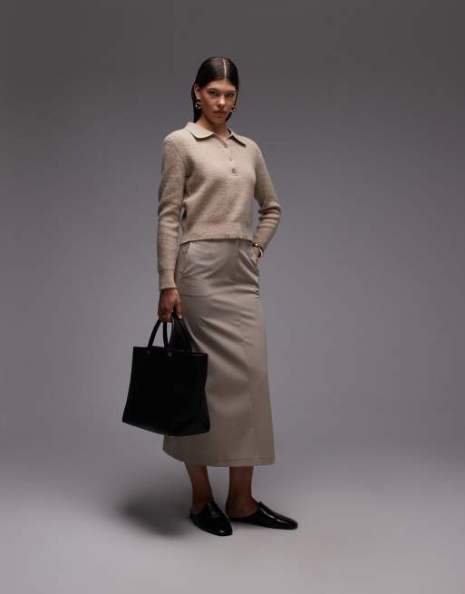 ASOS DESIGN – Eleganter Midi-Bleistiftrock in Steinbeige mit Gürtel