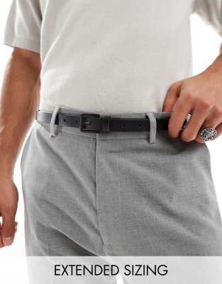 ASOS DESIGN – Eleganter, schmaler Gürtel aus Leder in Schwarz mit mattschwarzer Schnalle