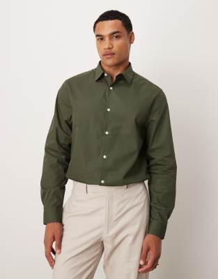 ASOS DESIGN – Elegantes, leicht zu bügelndes Popeline-Hemd in Dunkelgrün mit normaler Passform