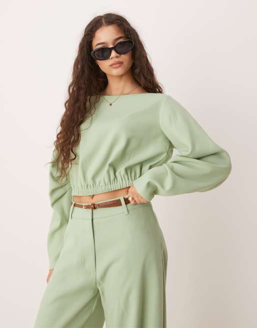 ASOS DESIGN – Elegantes Oberteil in Grün mit Falten-Ärmeln, Kombiteil