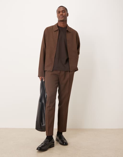 ASOS DESIGN – Elegantes Set in Braun mit Fischgrätmuster