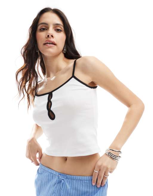 ASOS DESIGN – Elfenbeinfarbenes Camisole-Oberteil mit Kontrastdetails in Schwarz