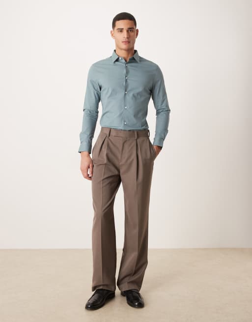 ASOS DESIGN – Eng anliegendes Bürohemd in Blau mit Stretchanteil