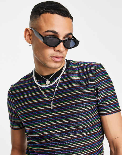 ASOS DESIGN – Eng anliegendes T-Shirt mit Metallic-Design in Schwarz und bunt