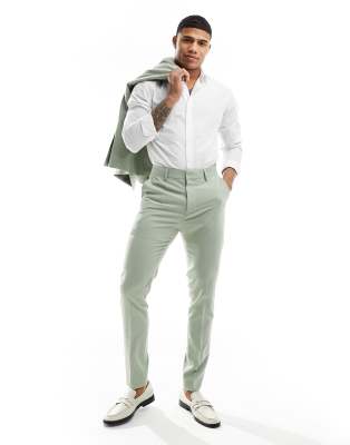 ASOS DESIGN – Eng geschnittene Anzughose in Salbeigrün