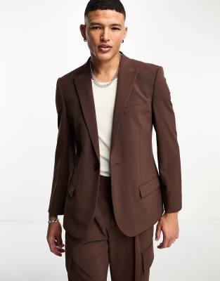 ASOS DESIGN – Eng geschnittene Anzugjacke in Dunkelbraun