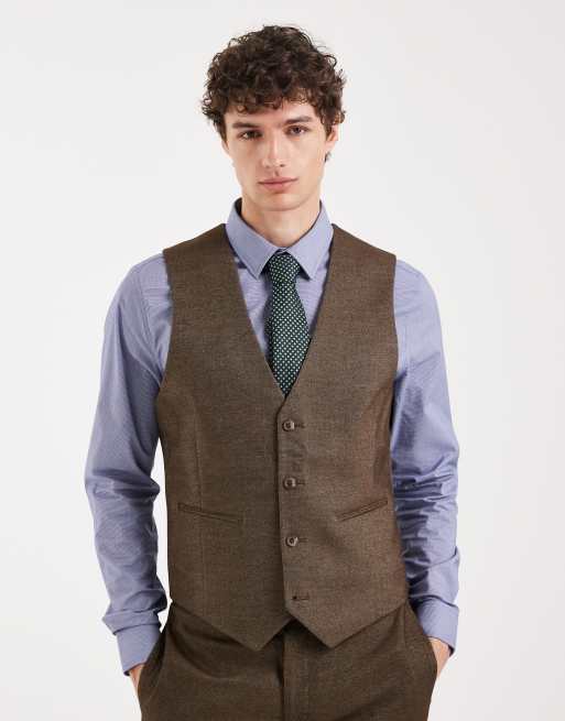 ASOS DESIGN – Eng geschnittene Anzugweste in brauner Wolloptik