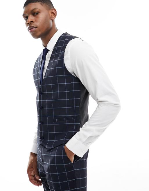 ASOS DESIGN – Eng geschnittene Anzugweste in Marineblau mit großem Karomuster