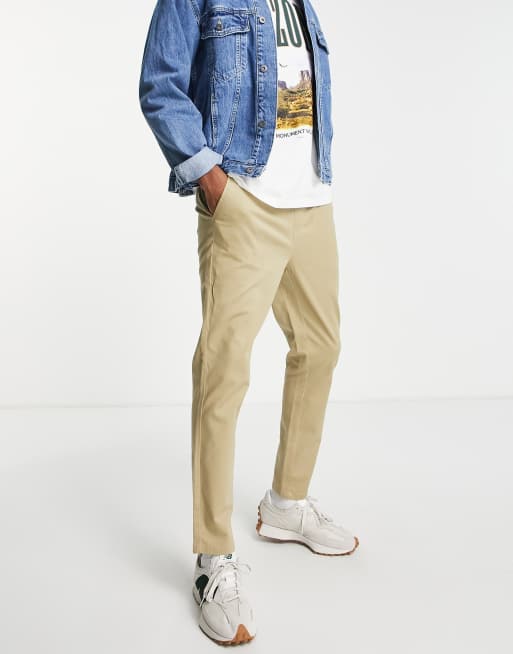 ASOS DESIGN – Eng geschnittene Chinohose in Mittelbeige mit elastischem Bund