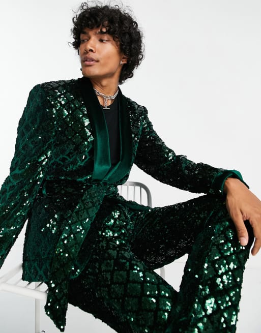 ASOS DESIGN – Eng geschnittener Anzug aus Samt mit Paillettenbesatz und Rautenmuster
