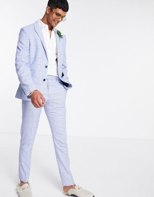 ASOS DESIGN – Eng geschnittener Anzug mit Prince-of-Wales-Karomuster in Blau