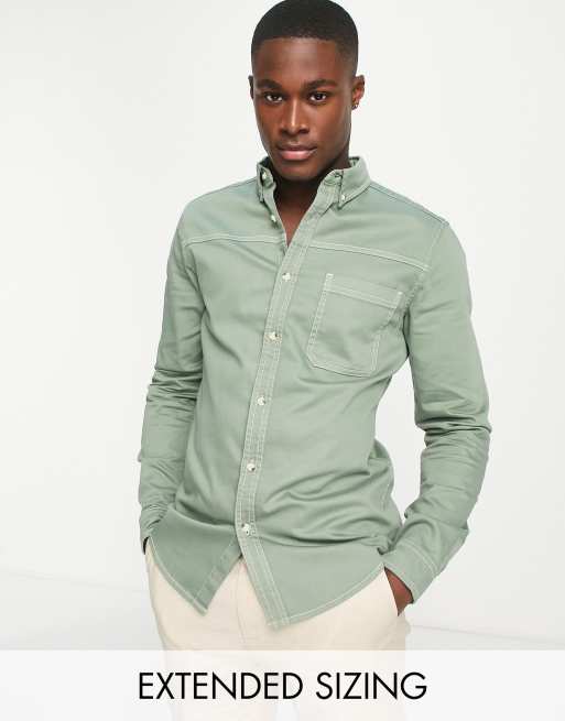 ASOS DESIGN – Eng geschnittenes Jeanshemd in Salbeigrün