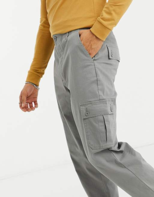 ASOS DESIGN – Eng zulaufende Cargohose in Khaki mit Knebelverschlüssen