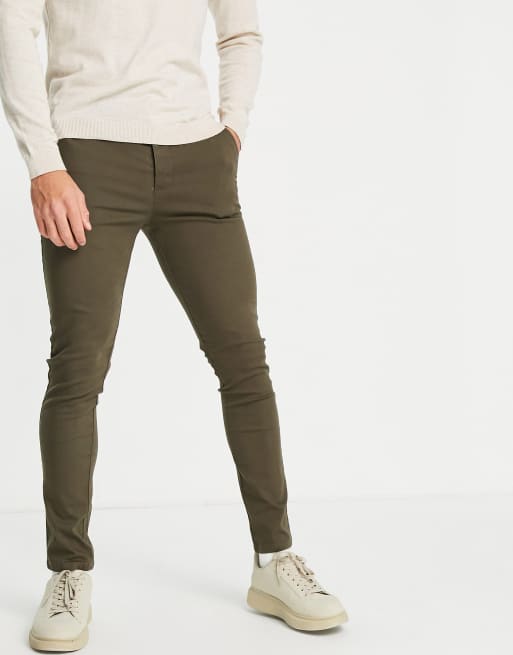 ASOS DESIGN – Enge Chinohose in dunklem Khaki