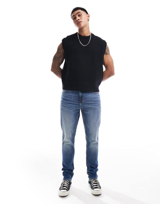 ASOS DESIGN – Enge Jeans in verwaschenem Mittelblau