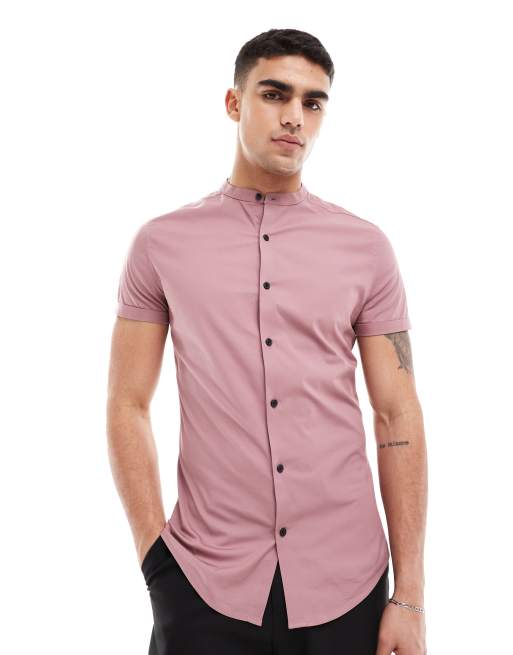 ASOS DESIGN – Enges Hemd in Malve mit Grandad-Kragen