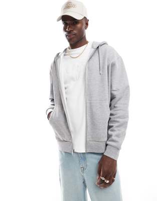 ASOS DESIGN – Essential – Kapuzenjacke in grau meliert mit Reißverschluss