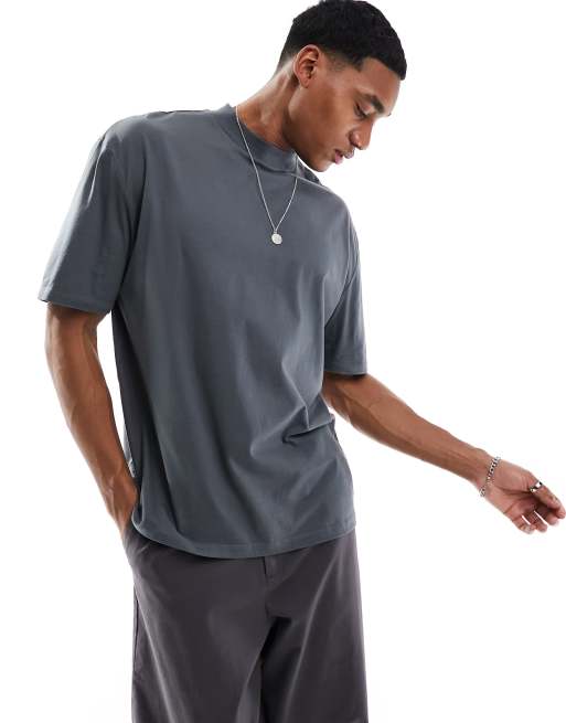 ASOS DESIGN – Essential – Oversize-T-Shirt in Anthrazit mit hohem Ausschnitt