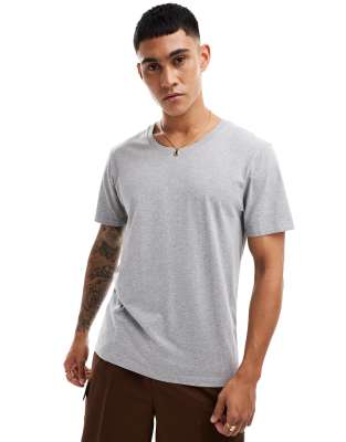 ASOS DESIGN – Essential – T-Shirt in meliertem Grau mit U-Ausschnitt