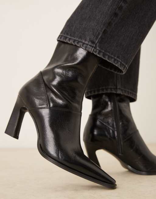ASOS DESIGN – Estella – Ankle-Boots aus schwarzem Leder mit kantiger Zehenpartie