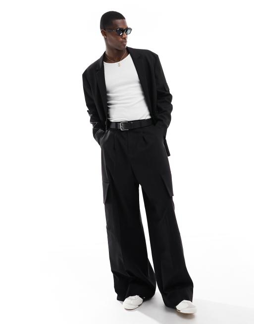 ASOS DESIGN – Extrem weit geschnittene Cargo-Anzughose in Schwarz