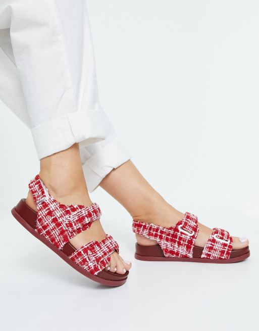 ASOS DESIGN – Factually – Sportliche Sandalen mit Tweedoptik in Rot