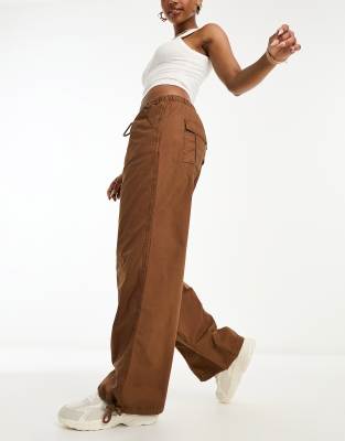 ASOS DESIGN – Fallschirm-Cargohose in verwaschenem Braun mit Ziernaht