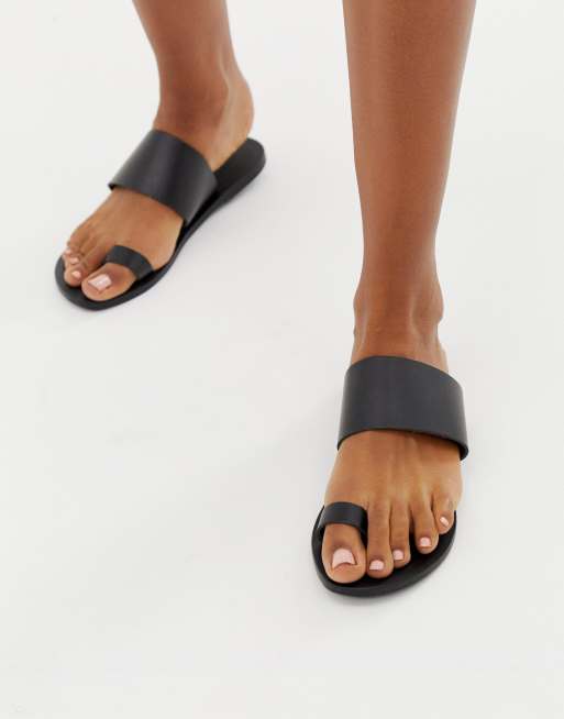 ASOS DESIGN – Faro – Flache Ledersandalen mit Zehenschlaufe