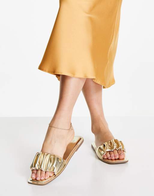 ASOS DESIGN – Favour – Flache, geraffte Mules in Gold