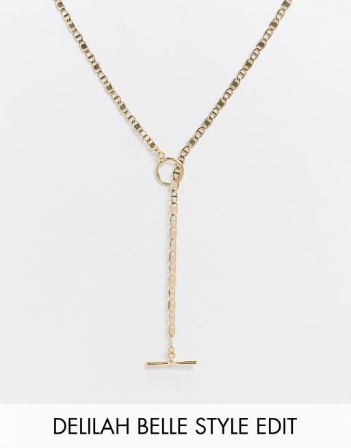 ASOS DESIGN – Feine, goldfarbene Panzerkette mit T-Element