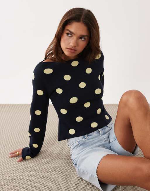 ASOS DESIGN – Feinstrick-Pullover in gepunktetem Marineblau mit U-Boot-Ausschnitt