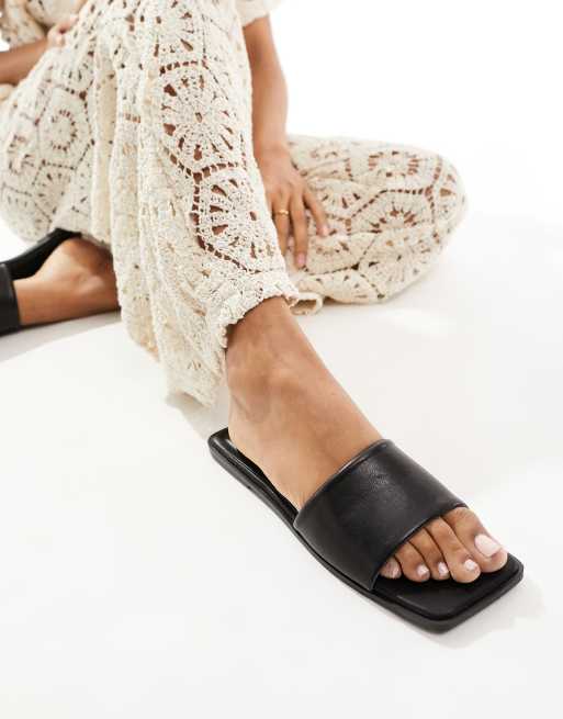 ASOS DESIGN – Fig – Flache Sandalen in Schwarz mit eckiger Zehenpartie
