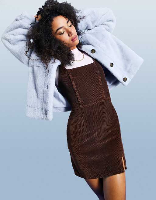 ASOS DESIGN – Figurbetontes Latzkleid aus Cord in Schokoladenbraun