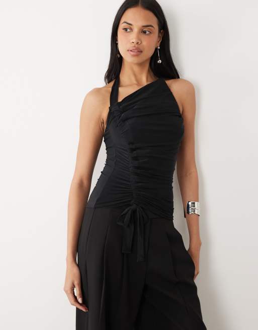 ASOS DESIGN – Figurbetontes Oberteil in Schwarz mit gerafftem Neckholder