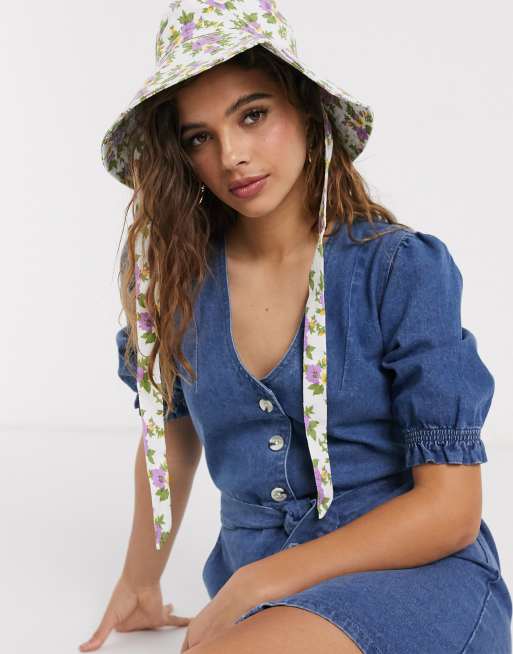 ASOS DESIGN – Fischerhut mit Bindeband und Blümchenmuster