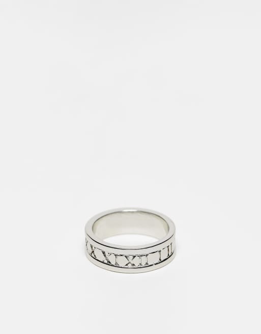 ASOS DESIGN – Flacher Ring in Silberoptik mit römischen Zahlen