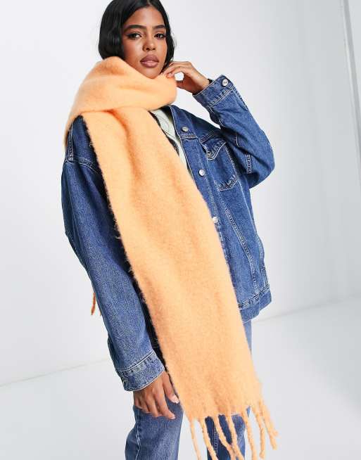 ASOS DESIGN – Flauschiger Fransenschal in Korallenorange