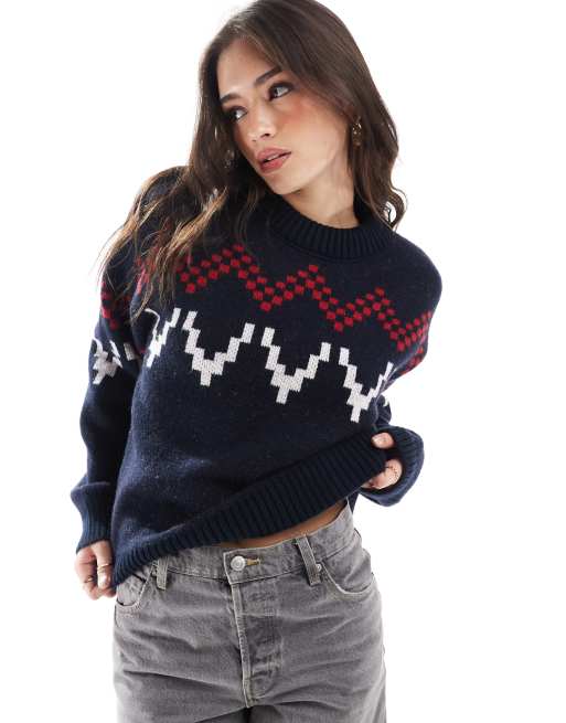 ASOS DESIGN – Flauschiger Norwegerpullover in Marineblau