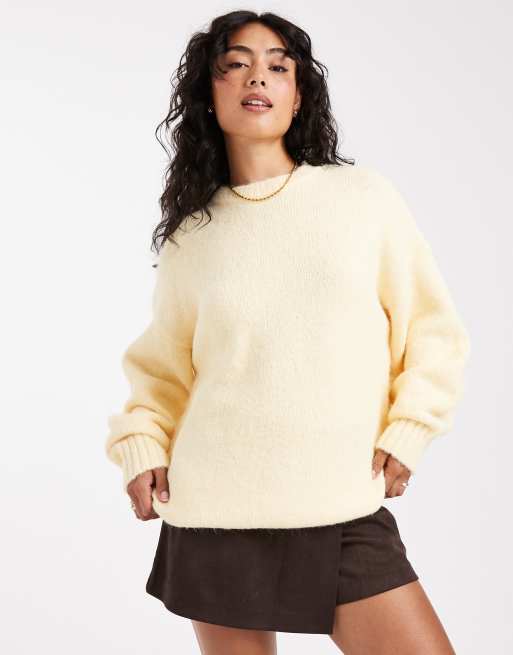 ASOS DESIGN – Flauschiger Oversize-Pullover in Buttermilchgelb mit Rundhalsausschnitt und Kokon-Ärmel