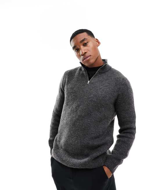 ASOS DESIGN – Flauschiger Strickpullover in Anthrazit mit kurzem Reißverschluss