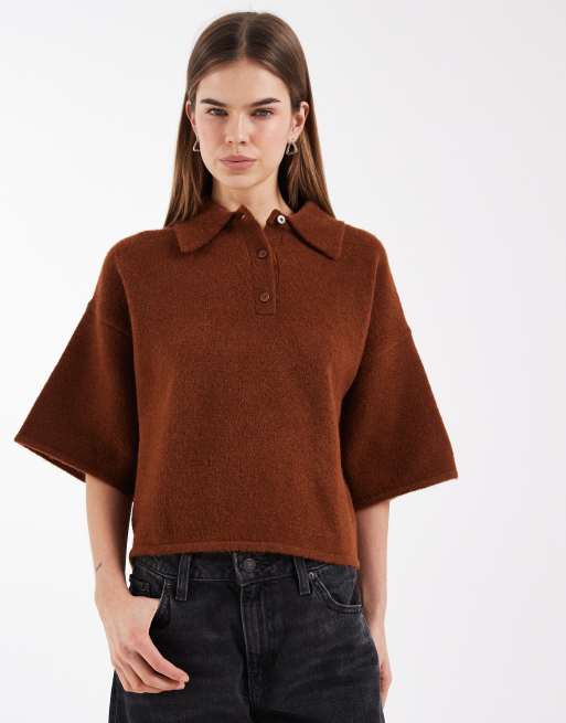 ASOS DESIGN – Flauschiges, figurbetontes Polohemd in Toffee