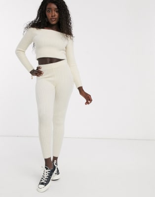 ASOS DESIGN – Flauschiges, geripptes Kombiteil in Creme