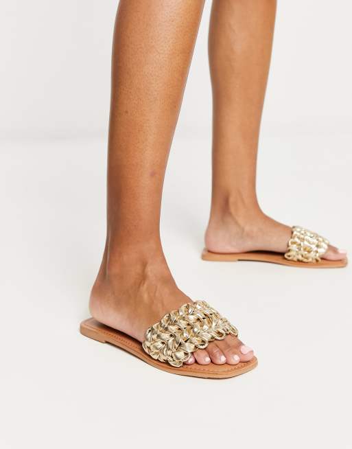 ASOS DESIGN – Flora – Flache Sandalen in Gold