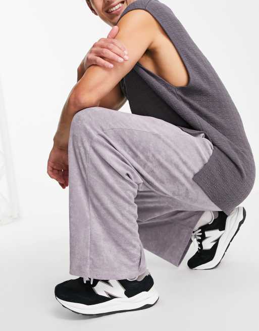 ASOS DESIGN – Frottee-Jogginghose in Grau mit weitem Bein, Kombiteil