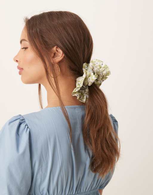 ASOS DESIGN – Geblümter Haargummi in Cremeweiß